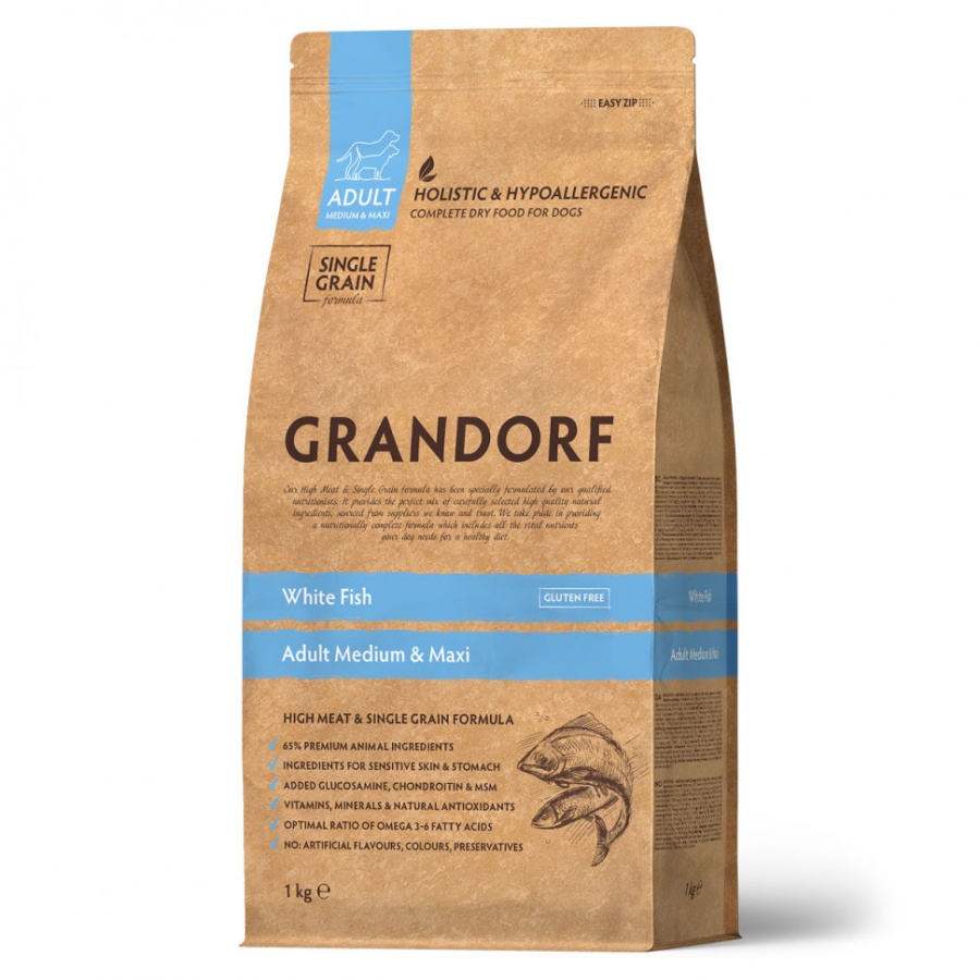 GRANDORF DOG White Fish MED&MAXI (белая рыба для собак средних и крупных пород) 1 кг.