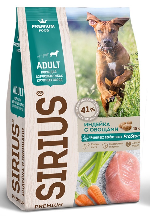 Sirius сухой корм для собак крупных пород индейка с овощами - 2 кг