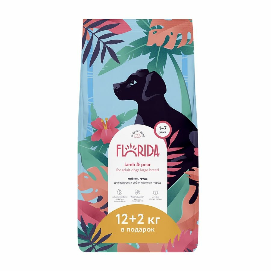 Florida сухой корм для взрослых собак крупных пород с ягненком и грушей 14 кг