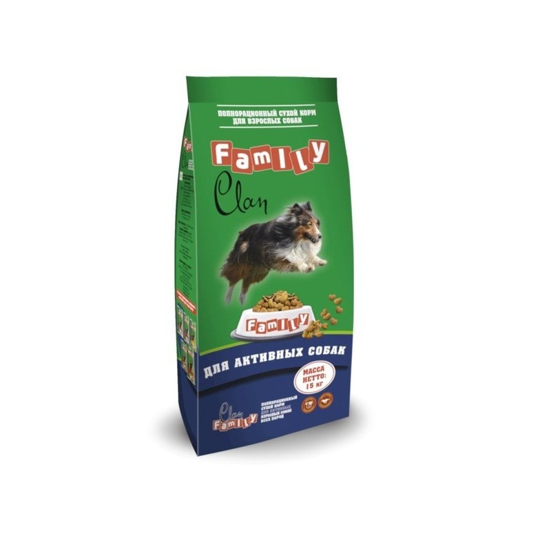 Clan Family сухой корм для взрослых активных собак с курицей - 15 кг