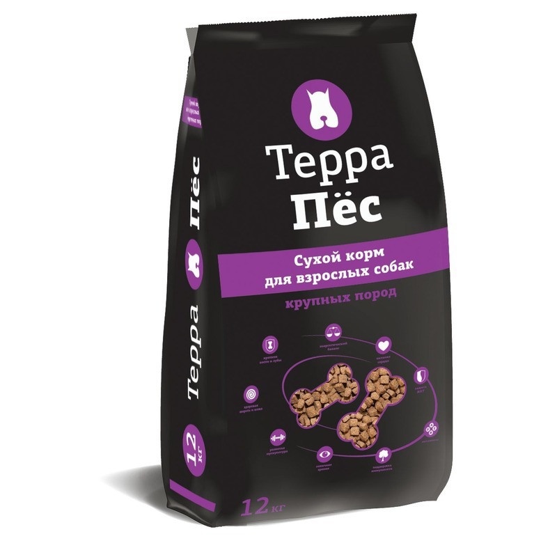 Терра Пёс сухой корм для взрослых собак крупных пород с мясом и злаками - 12 кг