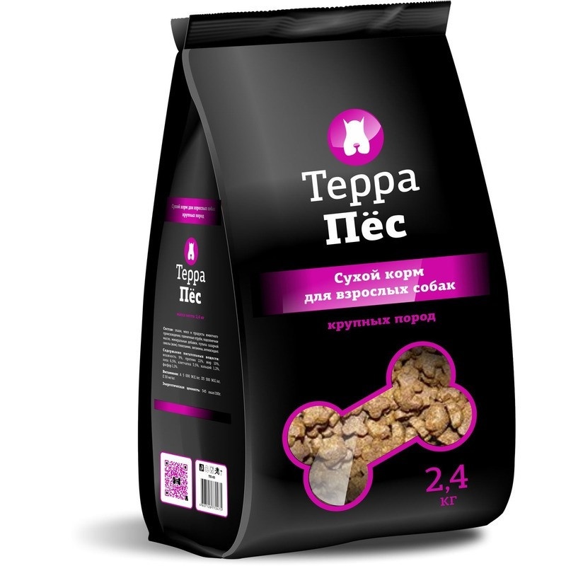 Терра Пёс сухой корм для взрослых собак крупных пород с мясом и злаками - 2,4 кг