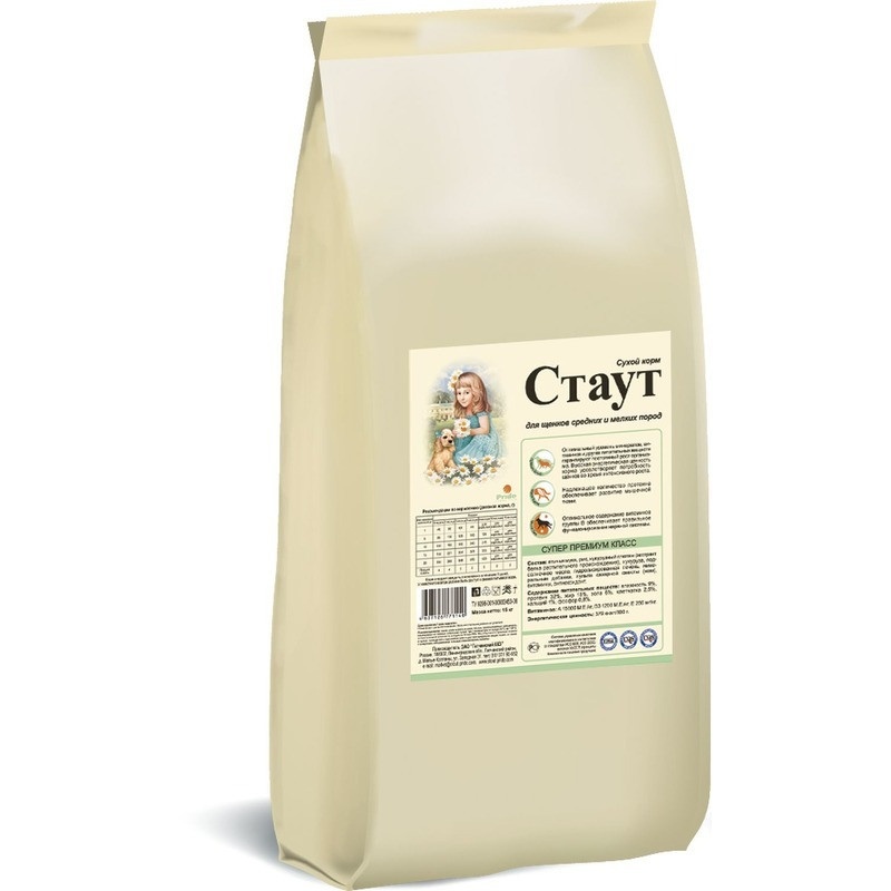 Стаут сухой корм для щенков мелких и средних пород с мясом и злаками - 15 кг