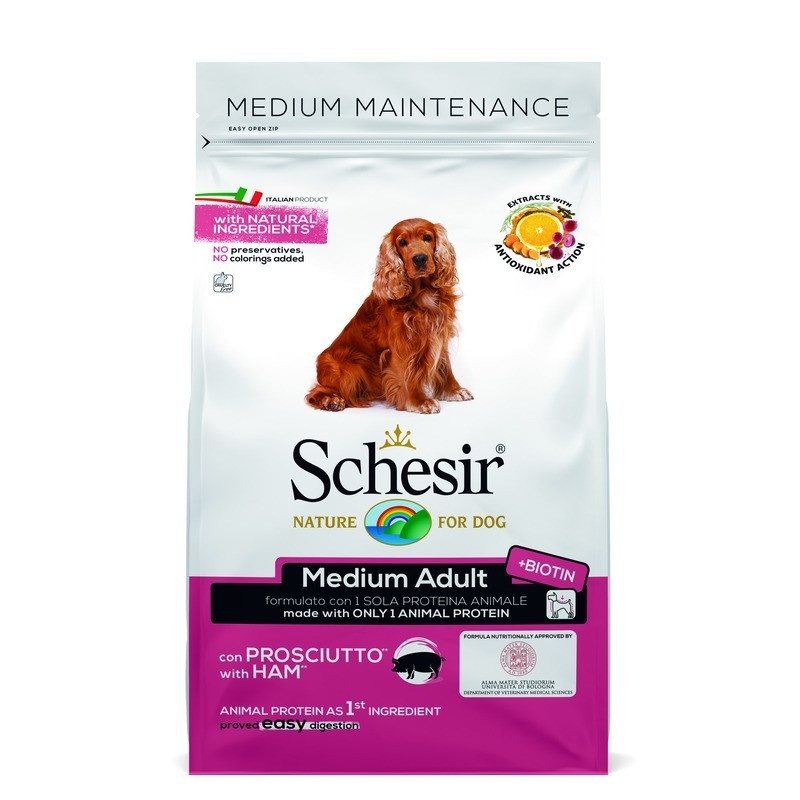 Schesir сухой корм для собак средних пород, с ветчиной - 12 кг