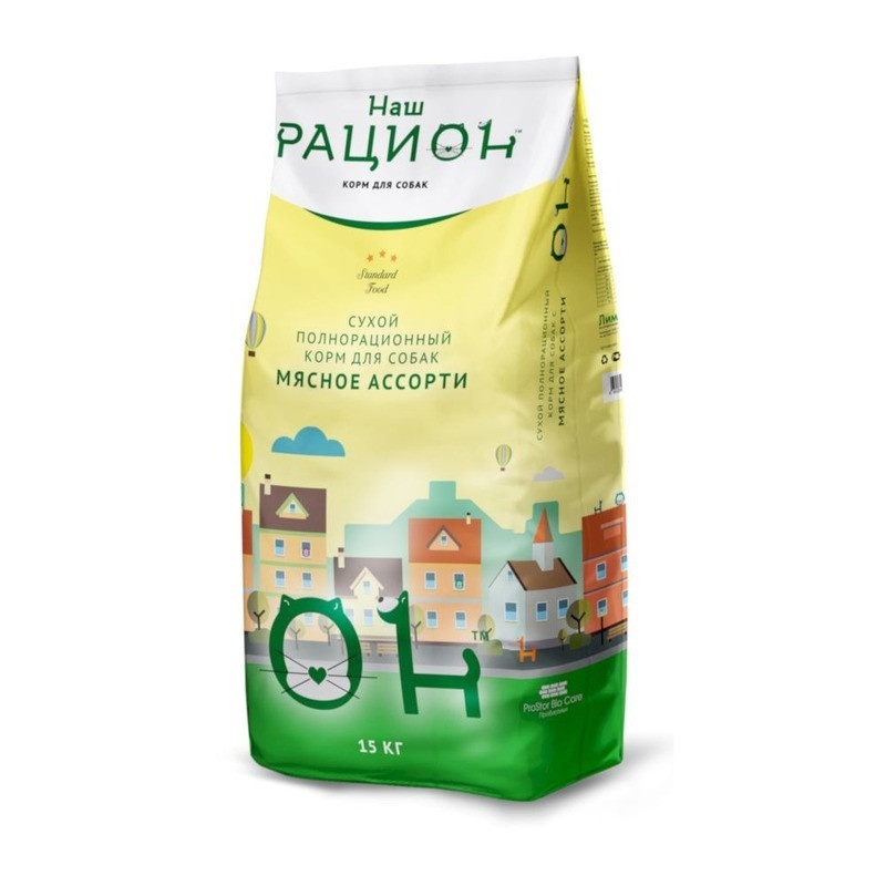 Наш рацион сухой корм для взрослых собак мясное ассорти - 15 кг
