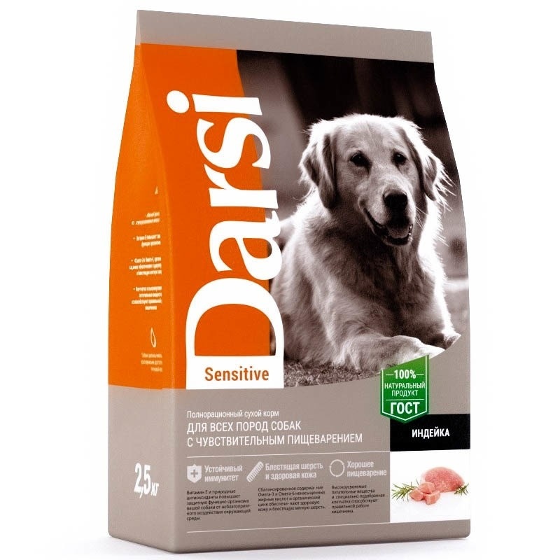 Darsi Sensitive сухой корм для собак всех пород с чувствительным пищеварением с индейкой 2,5 кг