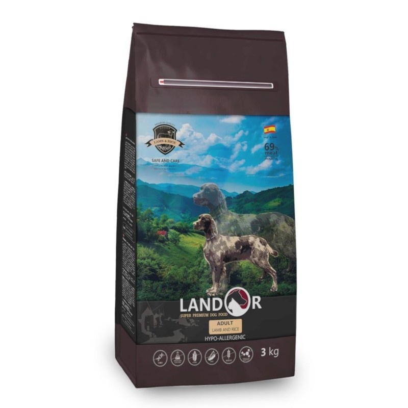 LANDOR ADULT DOG Полнорационный сухой корм для взрослых собак всех пород ягненок с рисом 3кг.