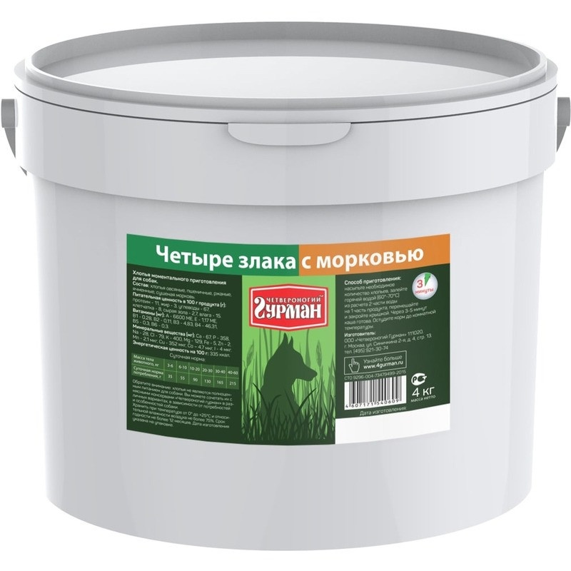 Каша для собак Четвероногий гурман 4 злака с морковью - 4 кг