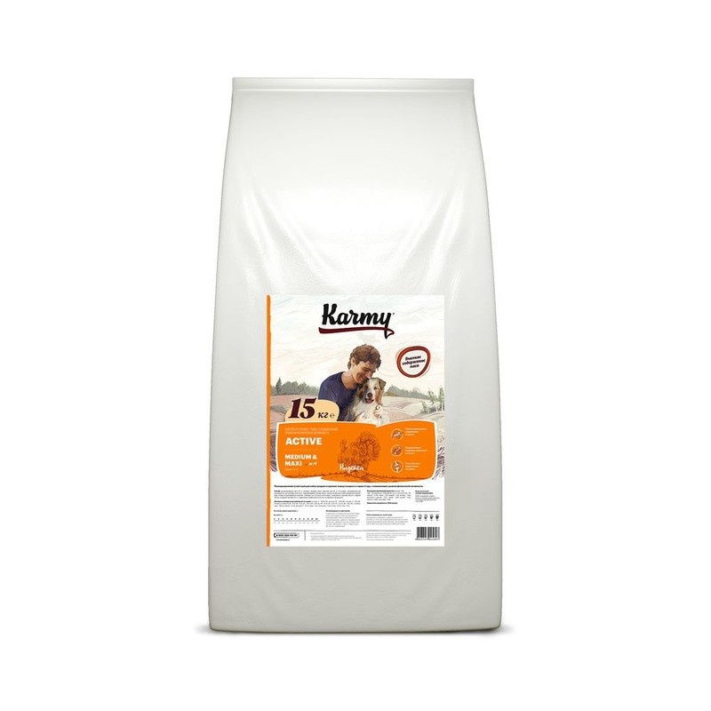 Сухой корм Karmy Active Medium & Maxi для взрослых собак средних и крупных пород при высоких физических нагрузках с индейкой 15 кг