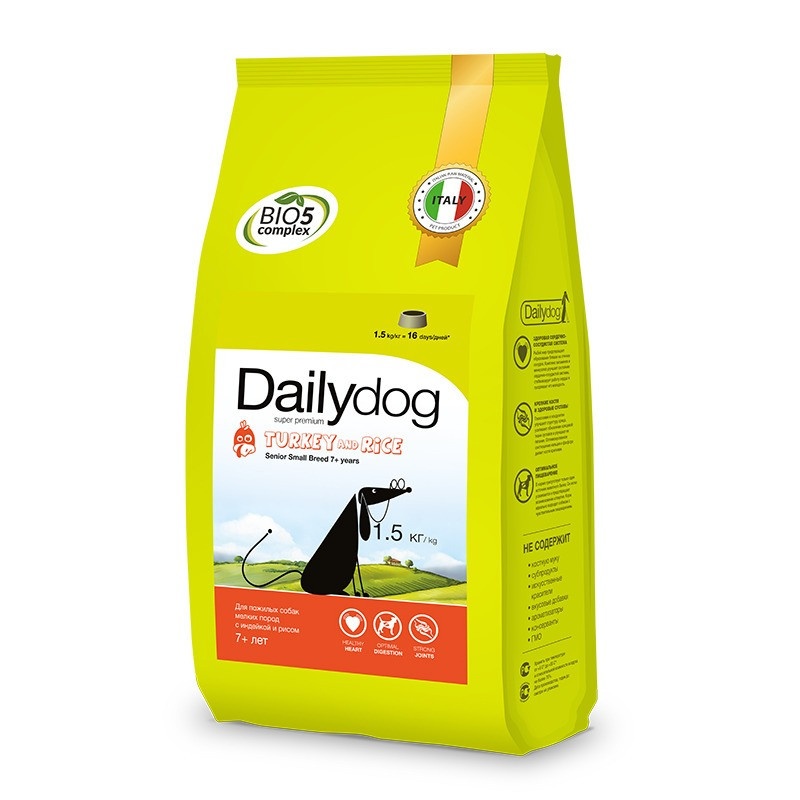 Сухой корм Dailydog Senior Small Breed Turkey and Rice для пожилых собак мелких пород с индейкой и рисом 1.5 кг