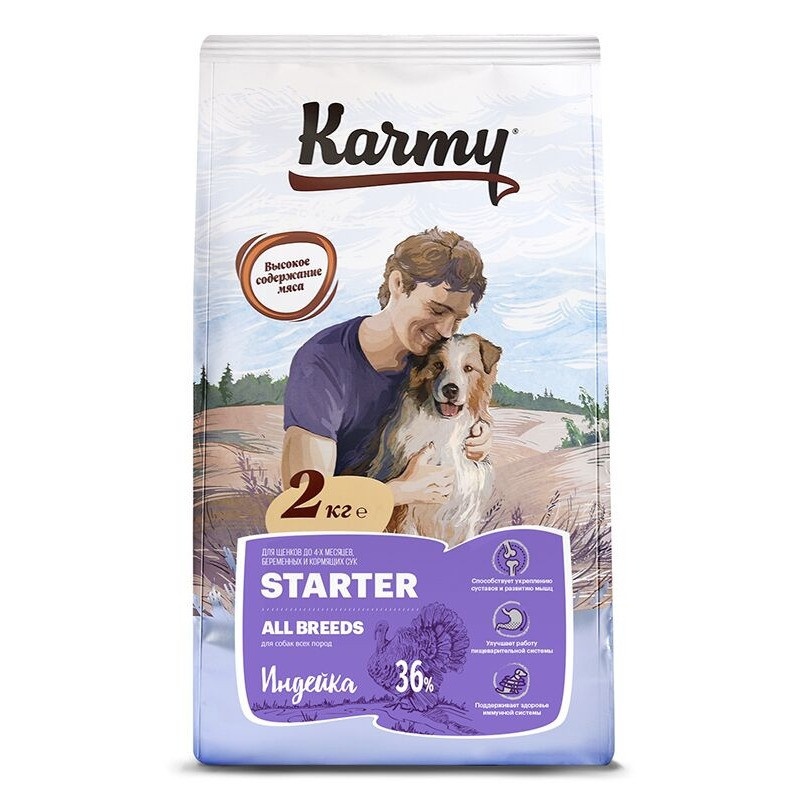 Сухой корм Karmy Sarter для щенков с момента отъема до 4 месяцев, беременных и кормящик сук с индейкой 2 кг