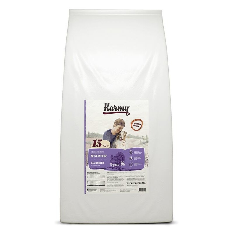 Сухой корм Karmy Sarter для щенков с момента отъема до 4 месяцев, беременных и кормящик сук с индейкой 15 кг