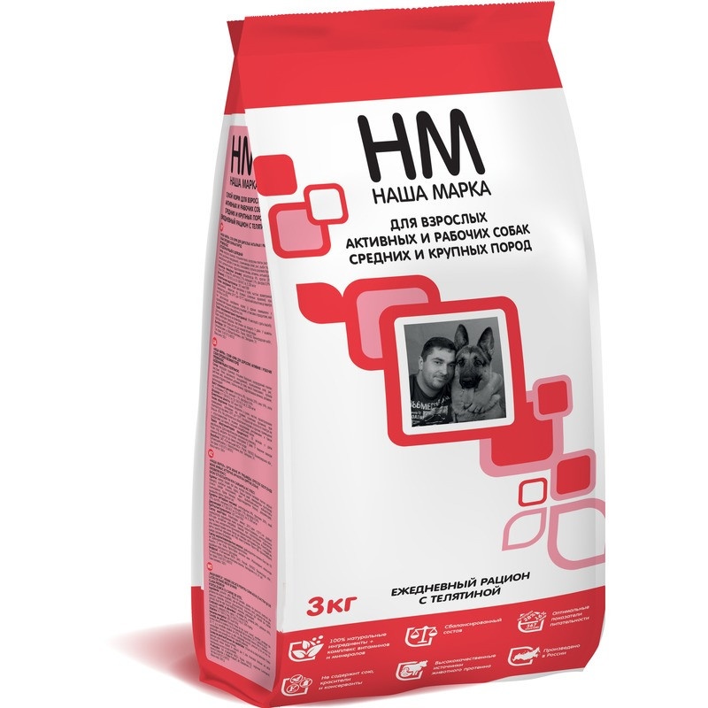 Наша Марка сухой корм для взрослых активных и рабочих собак средних и крупных пород с телятиной 3 кг