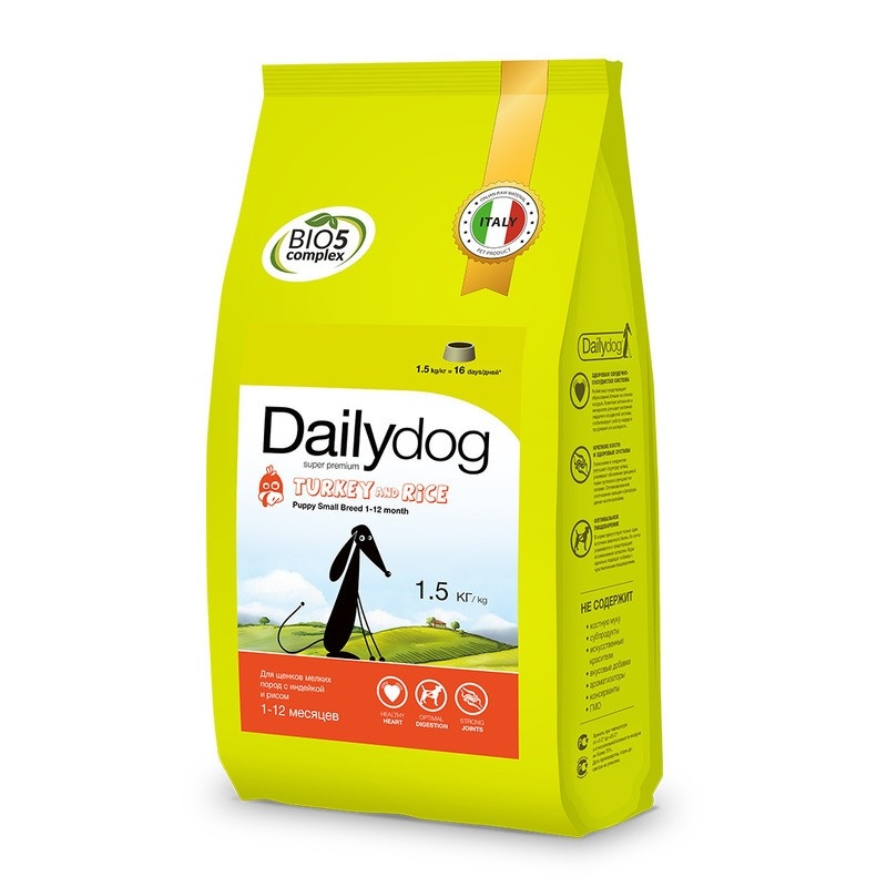 Сухой корм Dailydog Puppy Small Breed Turkey and Rice для щенков мелких и миниатюрных пород с индейкой и рисом 1.5 кг