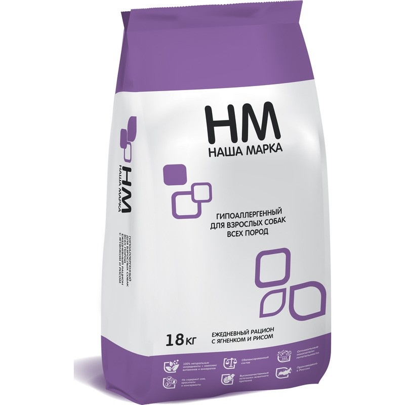 Наша Марка сухой гипоаллергенный корм для взрослых собак всех пород с ягненком и рисом - 18 кг