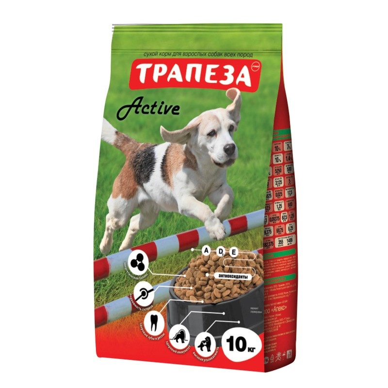 Поддержание жизненной энергии – Один из самых насыщенных рационов“Трапеза ACTIVE” на четверть состоит из протеина, с повышенным содержанием жира и клетчатки. Такая формула позволяет собаке с повышенной активностью всегда оставаться в форме, а после изнурительных тренировок или долгой подвижной игры, быстро восполнить потребность в энергии.