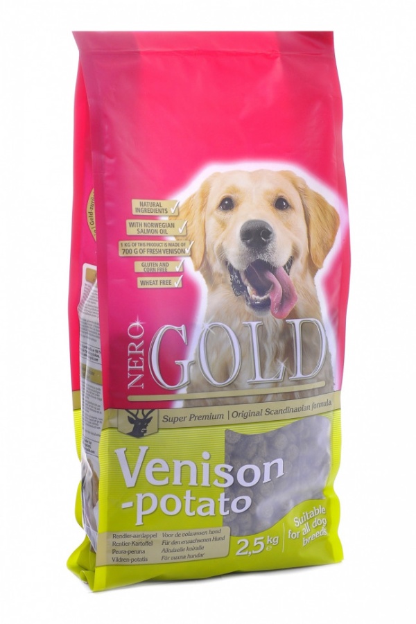 Nero Gold Adult Dog Venison & Potato - это полностью сбалансированный сухой корм для взрослых собак супер премиум класса.