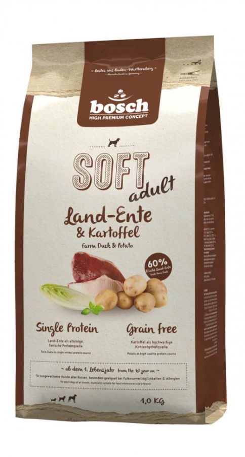 Корм с уткой и картофелем произведён на основе свежего мяса без использования мясной муки и относится к категории кормов holistic . Высокое содержание свежего мяса и особая полувлажая консистенция обеспечивают великолепную вкусовую привлекательность. Использование единственного источника животного белка и отсутствие злаков в составе снижают риск пищевой непереносимости и аллергии. Мясо утки обладает низким аллергенным потенциалом и отлично подходит собакам с чувствительным пищеварением. Подходит для собак всех пород.