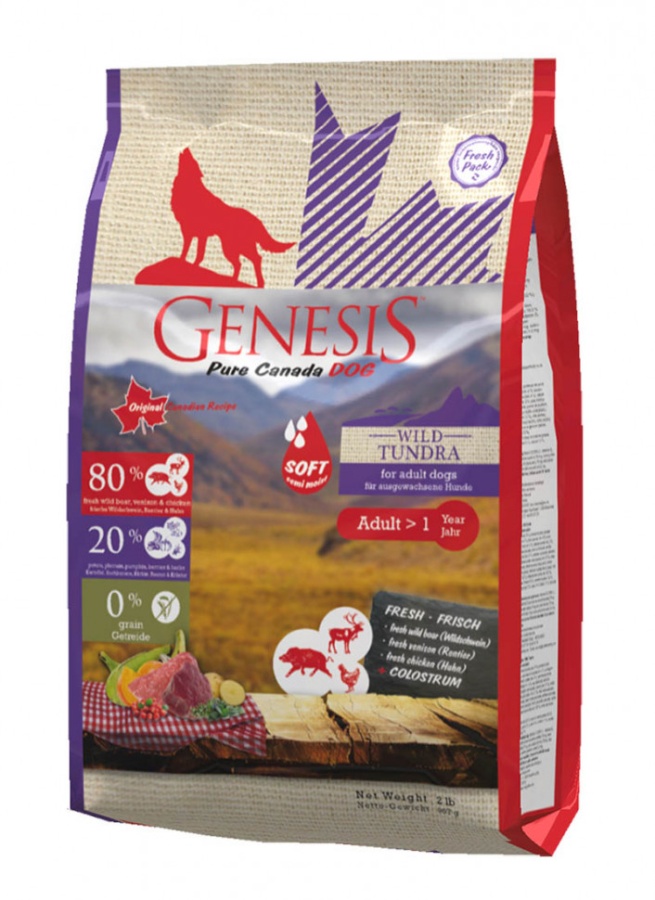 Genesis Pure Canada Wild Tundra Soft с повышенной влажностью для взрослых собак всех пород с мясом дикого кабана, северного оленя и курицы 907 гр