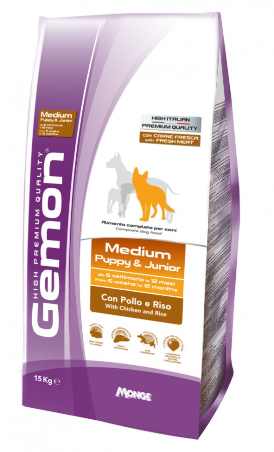 Корм GEMON DOG MEDIUM для щенков средних пород с курицей и рисом - 15 кг