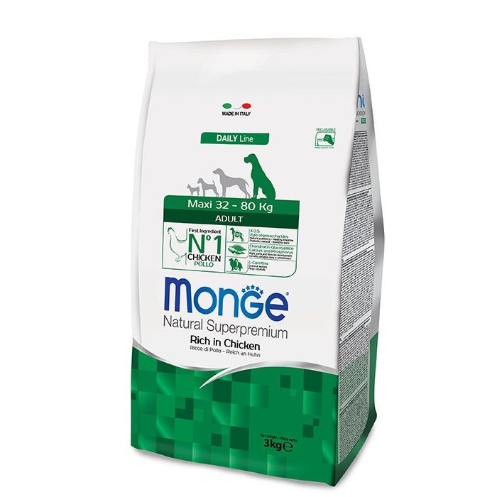 MONGE SUPERPREMIUM DOG MAXI ADulT - это полноценный сбалансированный рацион для ежедневного питания взрослых собак крупных пород с нормальной физической активностью.