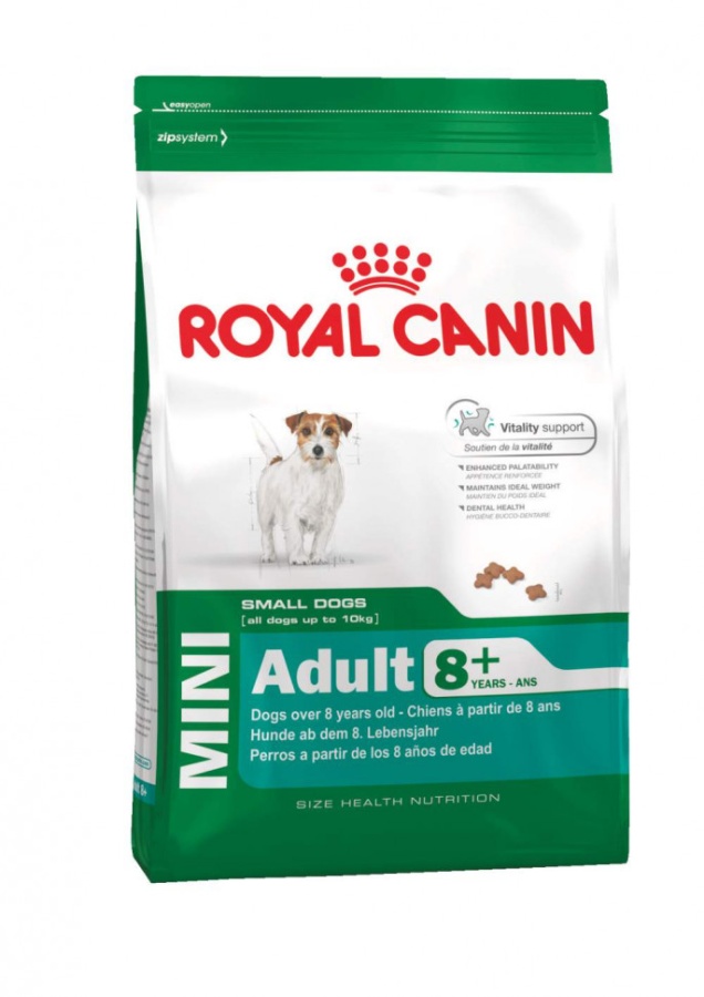 Полнорационный сухой корм Royal Canin Mini Adult 8+ подходит собакам мелких размеров (вес взрослой собаки менее 10 кг) в возрасте с 8 до 12 лет. Запатентованный комплекс антиоксидантов и особые питательные вещества в состве этой формулы помогают поддерживать жизненную энергию собак мелких размеров, у которых появились признаки старения (нарушения функций сердца и почек). Удовлетворяет привередливый аппетит собак мелких размеров благодаря своему составу и специально отобранным эксклюзивным ароматам. Помогает сохранить идеальный вес у собак мелких размеров, способствуя улучшению метаболизма жиров благодаря содержанию L-карнитина. Помогает замедлить образование зубного налета благодаря полифосфату натрия, который связывает кальций, содержащийся в слюне.