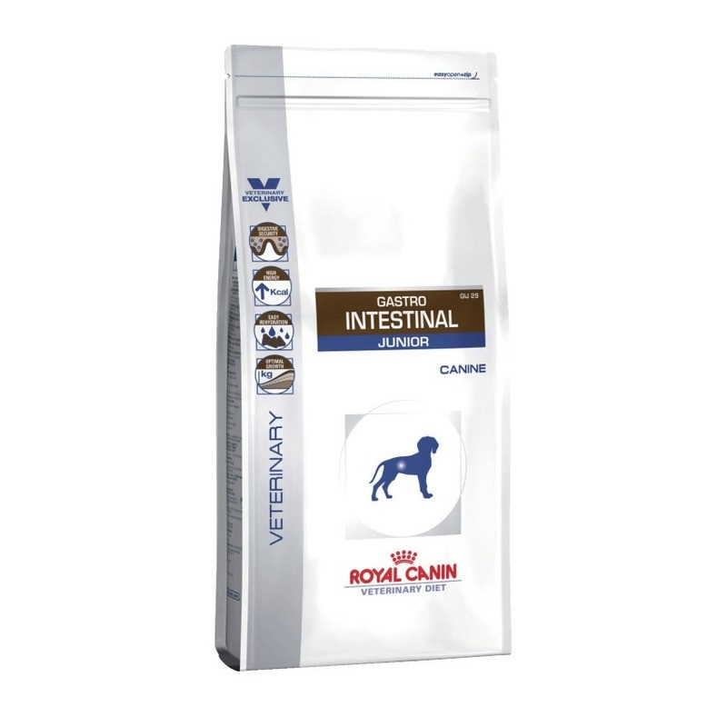 Диета щенков в возрасте до 1 года, для сук мелких и средних размеров (весом до 25 кг) с 6-й по 9-ю неделю беременности, в период лактации, при нарушении пищеварения. Сочетание высококачественных белков с высокой степенью усвояемости (L. I. P*. белки), пребиотиков, свекольного жома, риса и рыбьего жира обеспечивает максимальную безопасность пищеварения. Повышенное содержание энергии позволяет ограничить объем корма и снизить нагрузку на кишечник. При нарушениях пищеварения часто наблюдаются плохой аппетит и потеря веса. Размер, структура и форма крокет позволяют легко размачивать их в воде, что приводит к повышению поедаемости корма. Формула диетического корма Royal Canin Gastro Intestinal Junior GIJ29 включает в себя все питательные вещества, необходимые для оптимального роста и развития щенков.