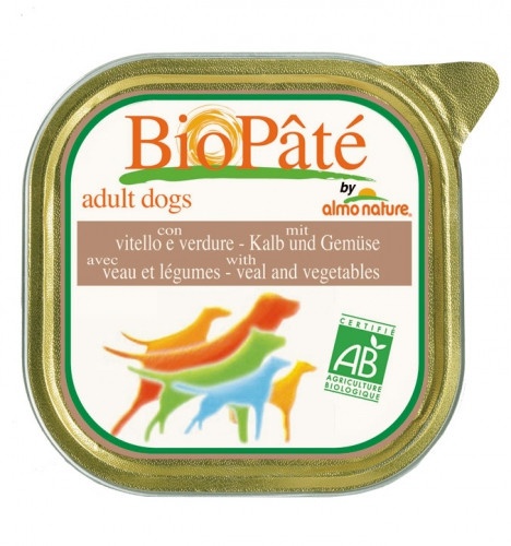 Almo Nature Daily Menu Adult Dog Bio Pate Veal&Vegetables - повседневный консервированный корм в форме паштета супер-премиум класса для взрослых собак. Ингредиенты: Питательные добавки на 1 кг: Гарантированный анализ: *ORGANIC 100% ингредиентов растительного происхождения поставляются с органических ферм. FR-BIO-10