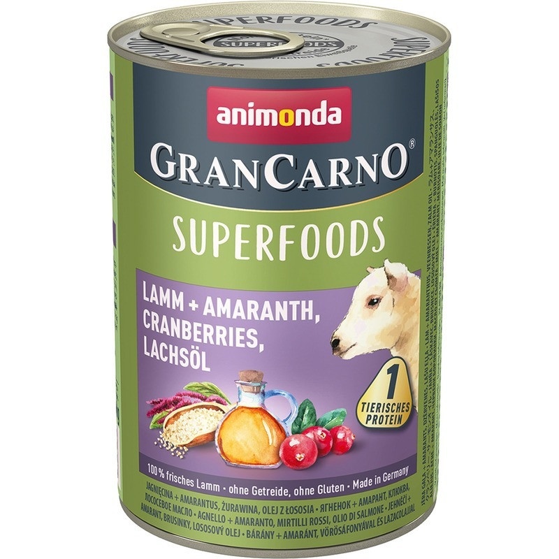 Animonda Gran Carno Superfoods влажный корм c ягненком, амарантом, клюквой и лососевым маслом для взрослых собак - 400 г