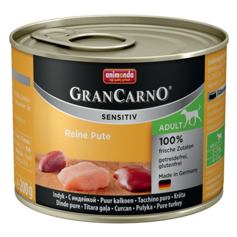 Animonda GranCarno Sensitiv / Анимонда Гран Карно Сенситив с индейкой для чувствительных собак 200 г (консервы)