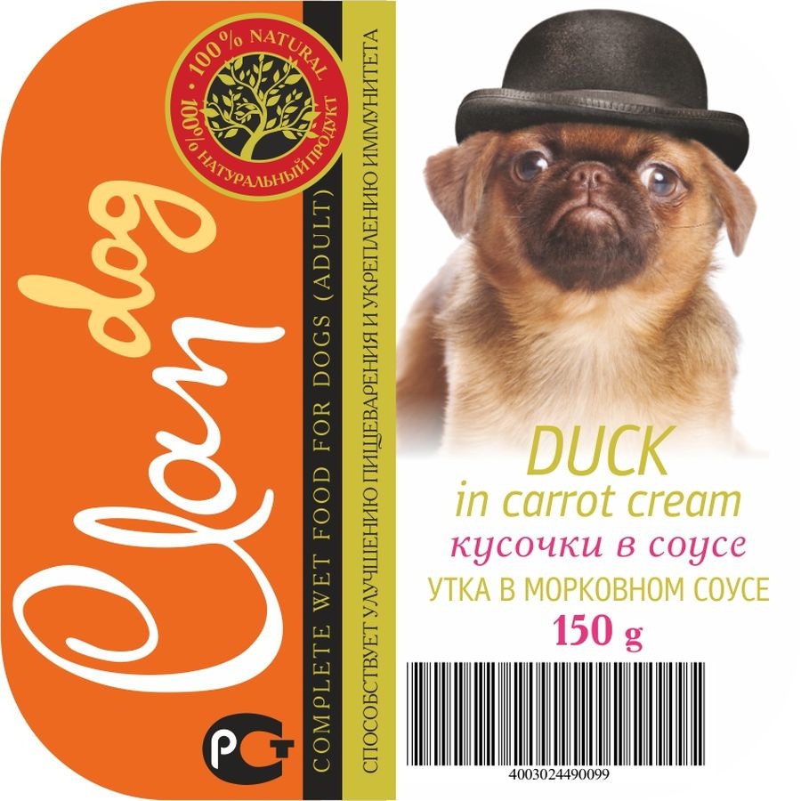 Clan Cl24 влажный корм для собак Деликатес Кусочки Утка в морковном соусе в консервах - 150 г