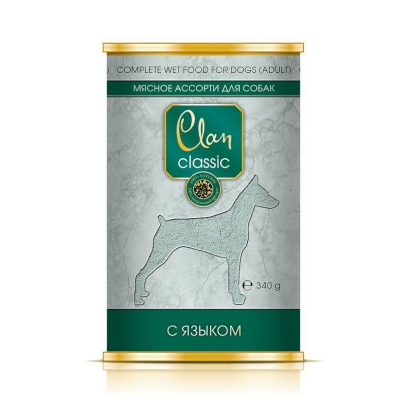 Clan Classic влажный корм для собак мясное ассорти с языком в консервах - 340 г