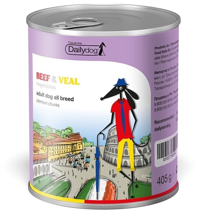 Dailydog casual Консервы для собак премиум кусочки говядины и телятины с овощами - 405гр (1 шт)