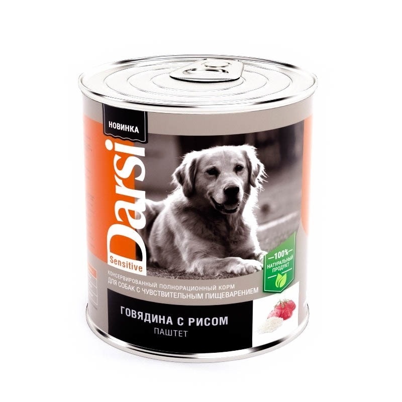 Darsi Sensitive влажный корм для собак с чувствительным пищеварением с говядиной и рисом 850 г