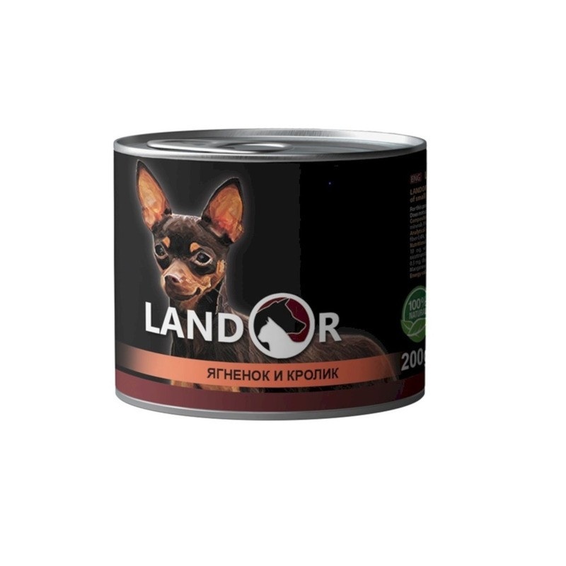 Landor влажный корм для собак мелких пород с ягненком и кроликом в консервах - 200 г