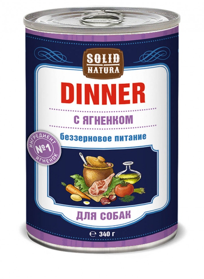 Solid Natura Dinner Ягненок влажный корм для собак в жестяной банке 340 г