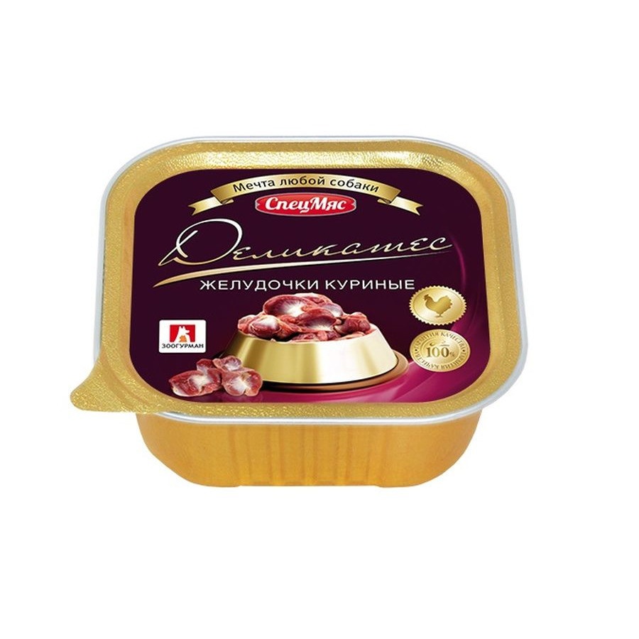 Зоогурман влажный корм для взрослых собак всех пород куриные желудочки - 150 г
