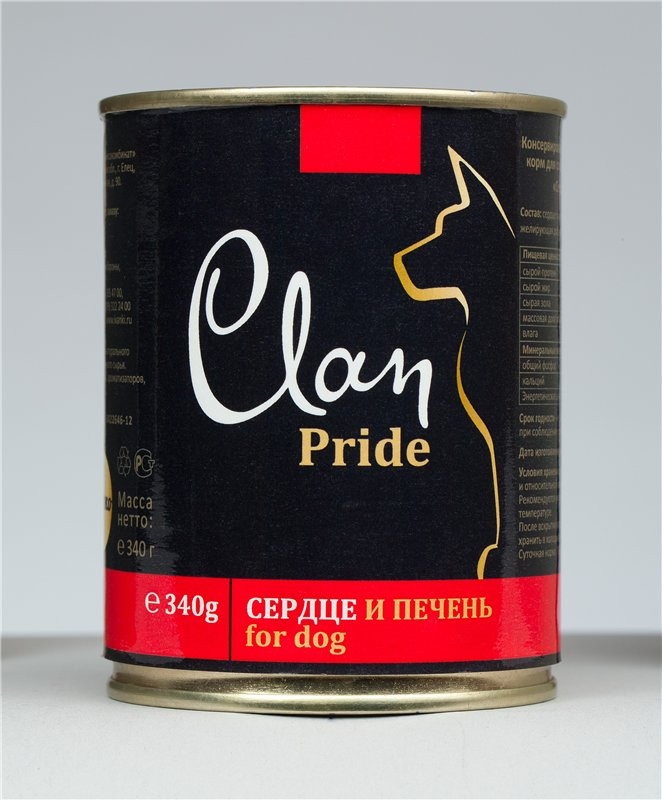 Консервы Clan Pride для собак с говяжьим сердцем и печенью - 340 г