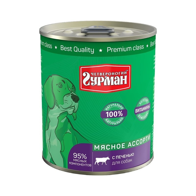 Полнорационный консервированный корм Четвероногий Гурман Мясное ассорти для собак с печенью - 340 г
