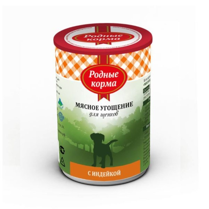 Родные корма Мясное угощение с Индейкой консервы для щенков 340 г