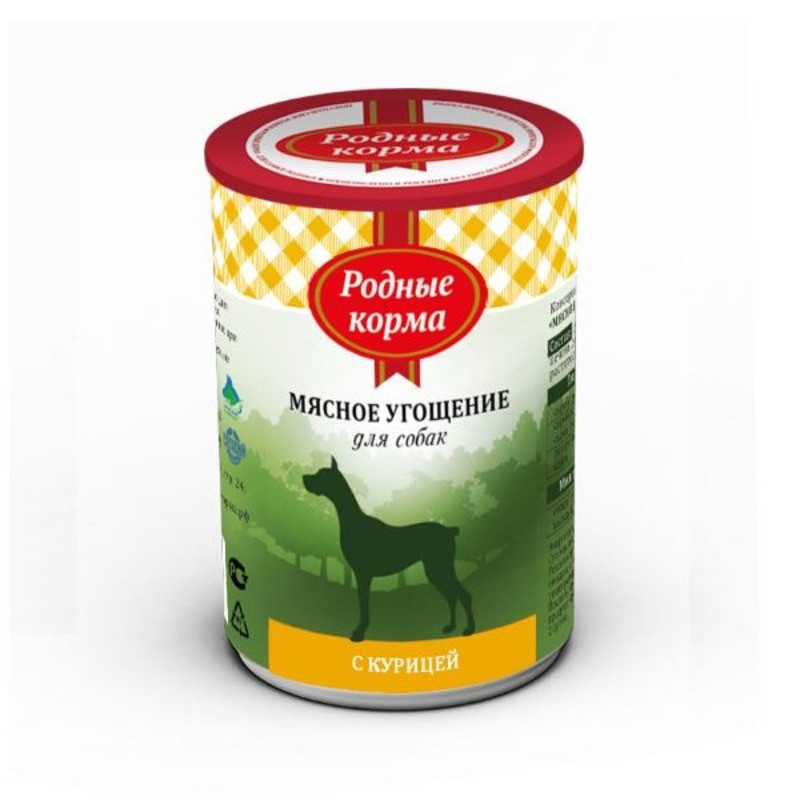 Родные корма Мясное угощение с Курицей консервы для собак 340 г