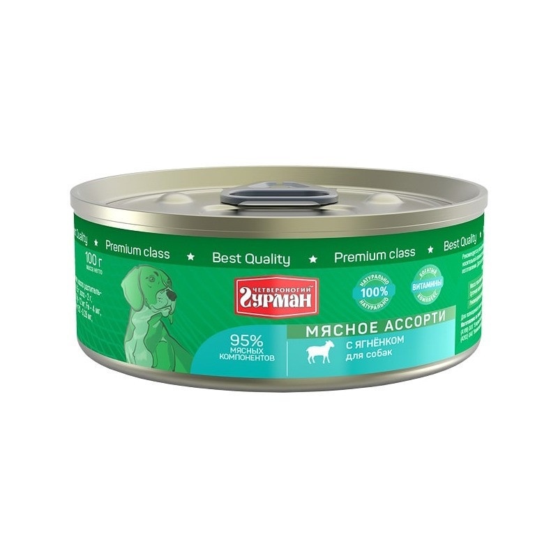 Четвероногий Гурман Мясное ассорти консервированный корм с ягнёнком для собак - 100 г (24 шт)