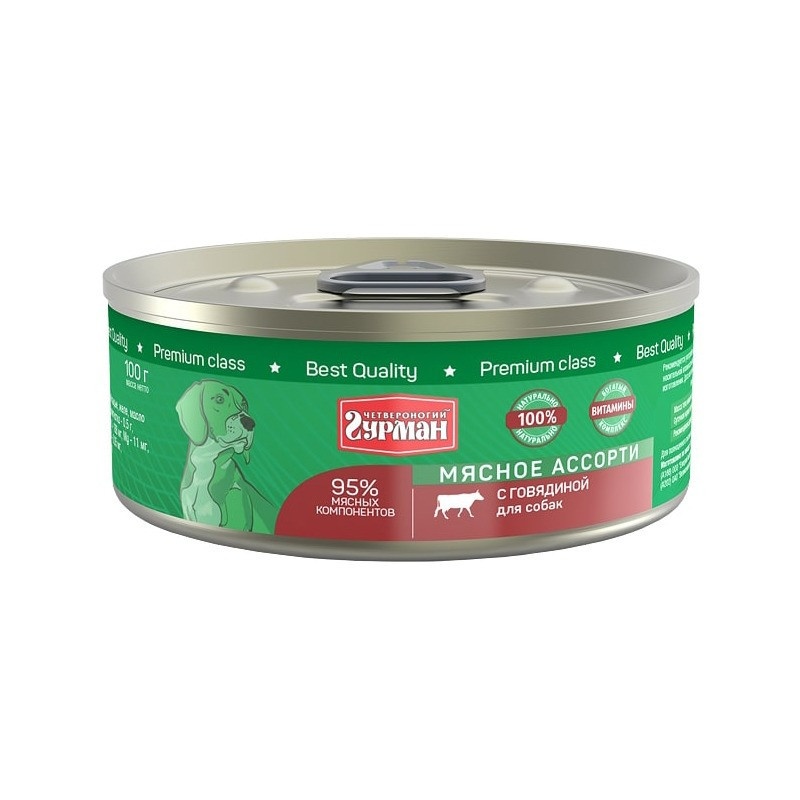 Четвероногий Гурман Мясное ассорти с говядиной для собак 100 г