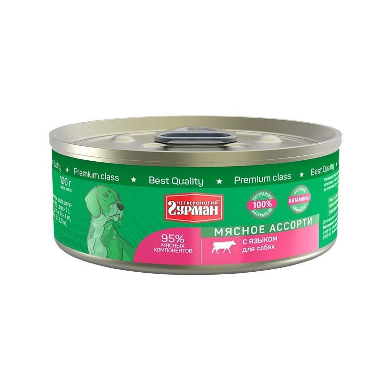 Четвероногий Гурман Мясное ассорти с языком для собак 100 г