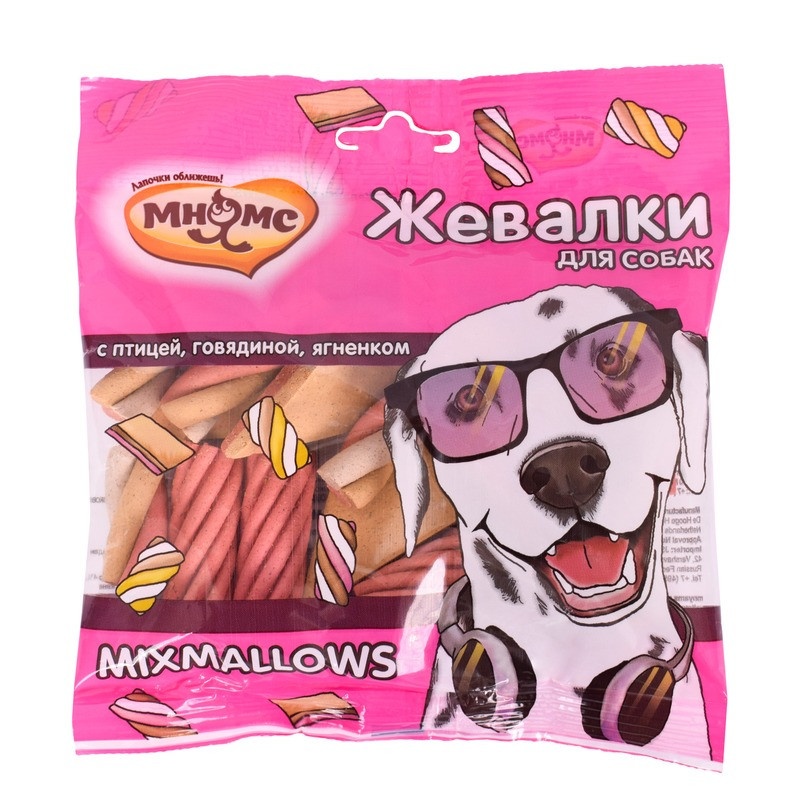 Мнямс лакомство Mixmallows жевалки для взрослых собак и щенков с птицей, говядиной и ягненком - 150 г