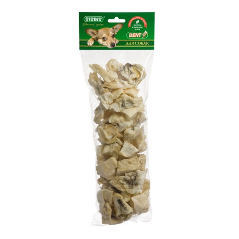 Titbit хрустики говяжьи XL- мягкая упаковка. Высокое содержание коллагена и эластина способствует улучшению формирования ушного хряща (для пород собак, стандартом которых предусмотрен вертикальный постав ушной раковины).
