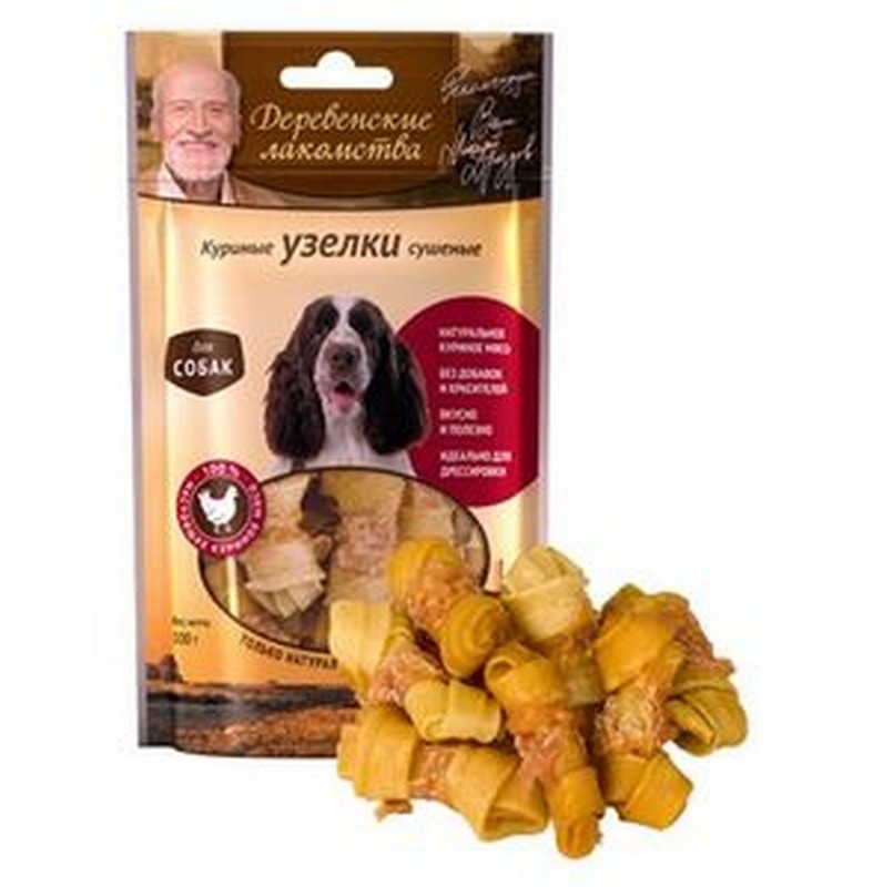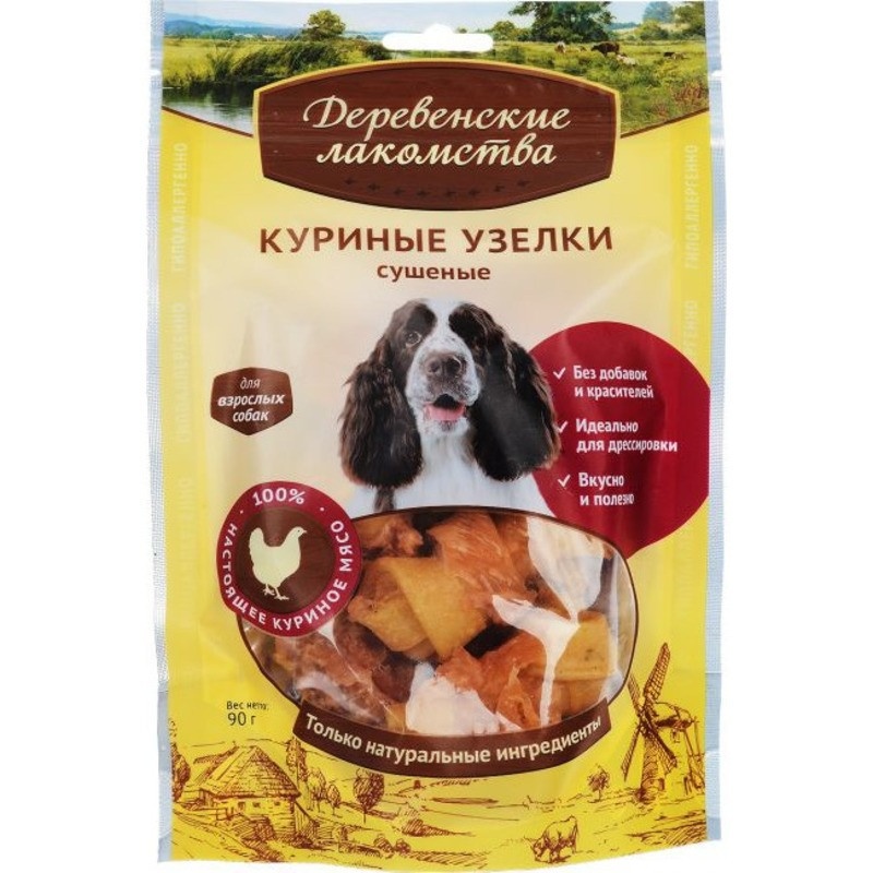 ДЕРЕВЕНСКИЕ ЛАКОМСТВА 100 % Мяса Куриные узелки сушеные для собак 90 гр