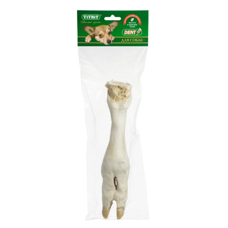 Titbit нога телячья - мягкая упаковка. Массирует десны и укрепляет жевательную мускулатуру, очищает зубной налет и предотвращает возникновение зубного камня.Особенно удобно для собак живущих в вольерных и уличных условиях. Прекрасная игрушка, сохраняющая в целости предметы интерьера и личные вещи. Изделие содержит трубчатую кость и не предназначено для полного поедания. Как только собака съела футляр из кожи, сухожилий и мышц – необходимо заменить лакомство на новое.