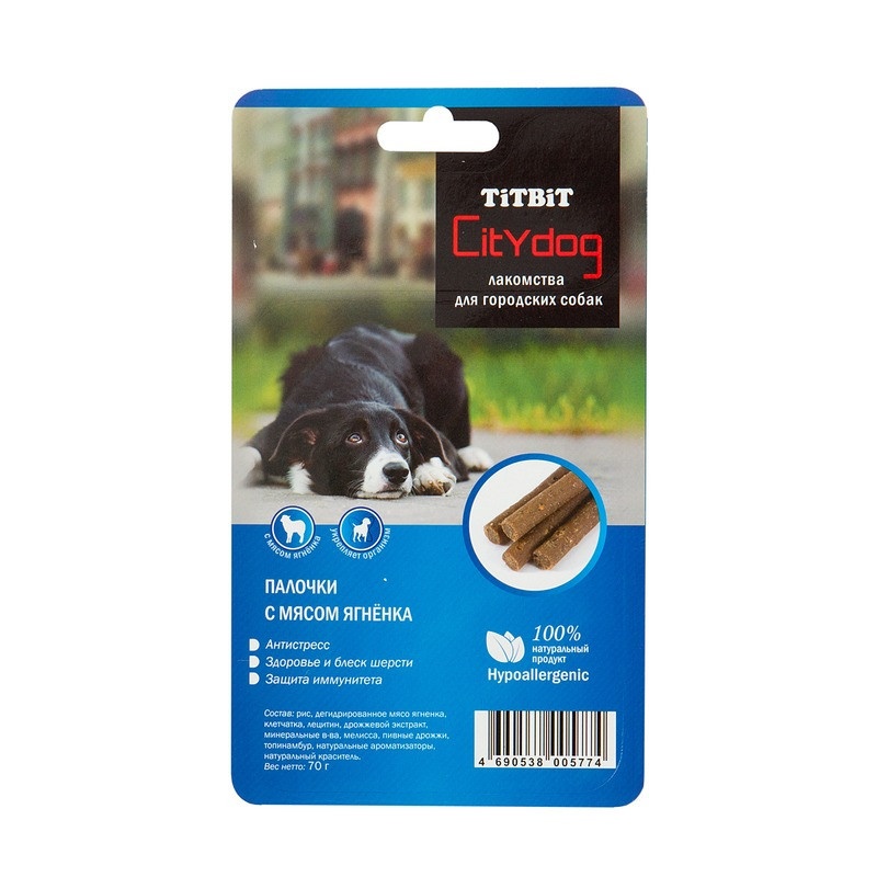 Titbit снек City Dog палочки с мясом ягненка - Б2-S. Лакомства для городских собак TiTBiT «CITY DOG» - профилактические лакомства, обогащенные специальными добавками для предупреждения наиболее распространенных проблем у собак, проживающих в городских условиях.