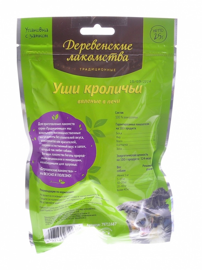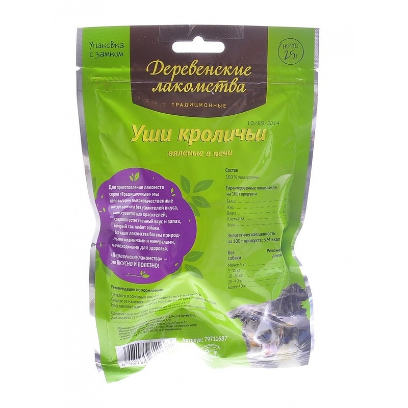 ДЕРЕВЕНСКИЕ ЛАКОМСТВА "Традиционные" Уши кроличьи вяленые в печи для собак 25 гр